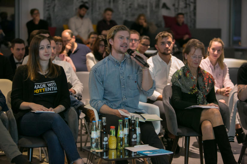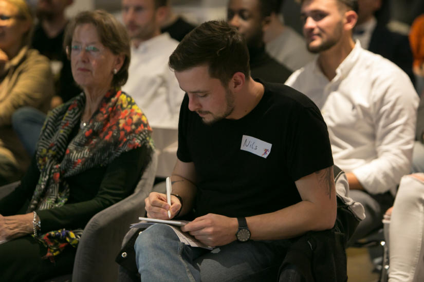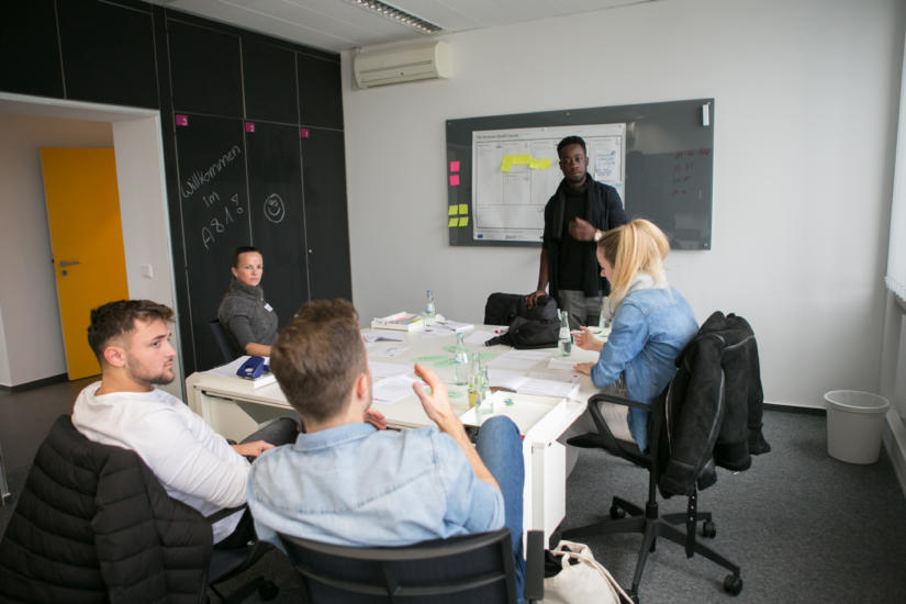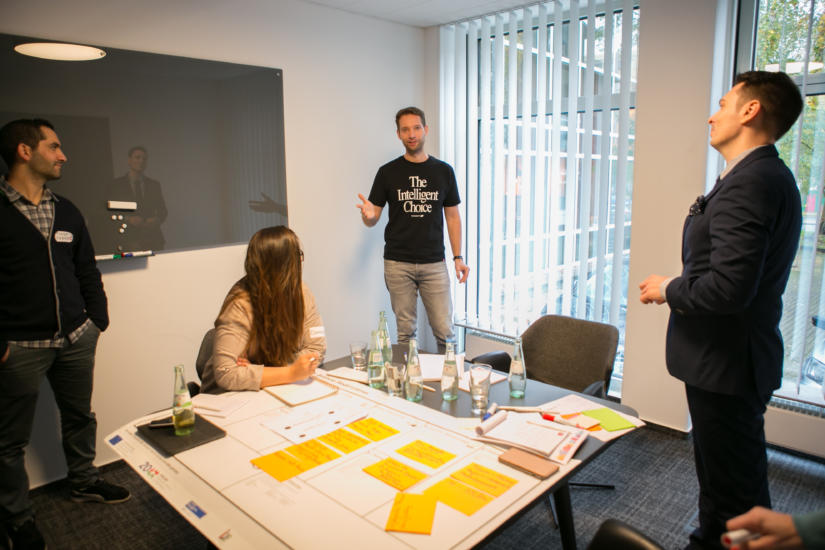 Hierbei wechselten sich immer wieder kleinere „Inputs“ in Form von kurzen Theorievorträgen mit intensiven Arbeitsphasen ab. Tatkräftige Unterstützung erhielten die Start-up-Teams von erfahrenen Mentoren wie Christian Dasbach, der über die Gründungsvorbereitung im „Business Model Canvas“ informierte, oder Pitchtrainer Nils Beckmann, welcher die Teilnehmer auf den perfekten Pitch vorbereitete. Auch in den folgenden Arbeitssessions wurden die Teams von mehreren Mentoren mit unterschiedlichen beruflichen Hintergründen unterstützt, die den angehenden Start-up-Teams bei Fragen zu Marketing, Finanzierung, Social-Entrepreneurship, Vertrieb und IT-Problemen zur Seite standen.